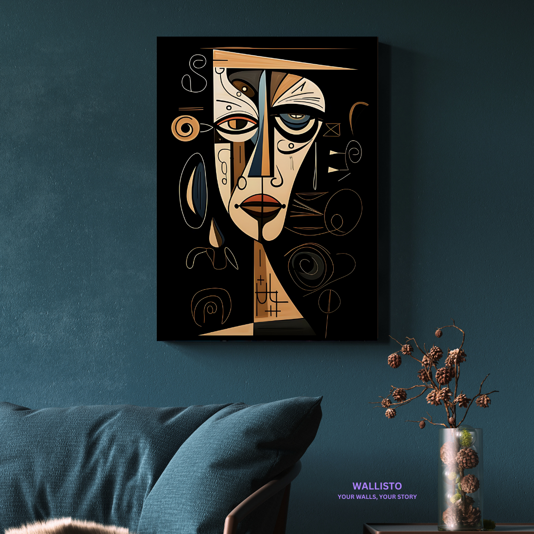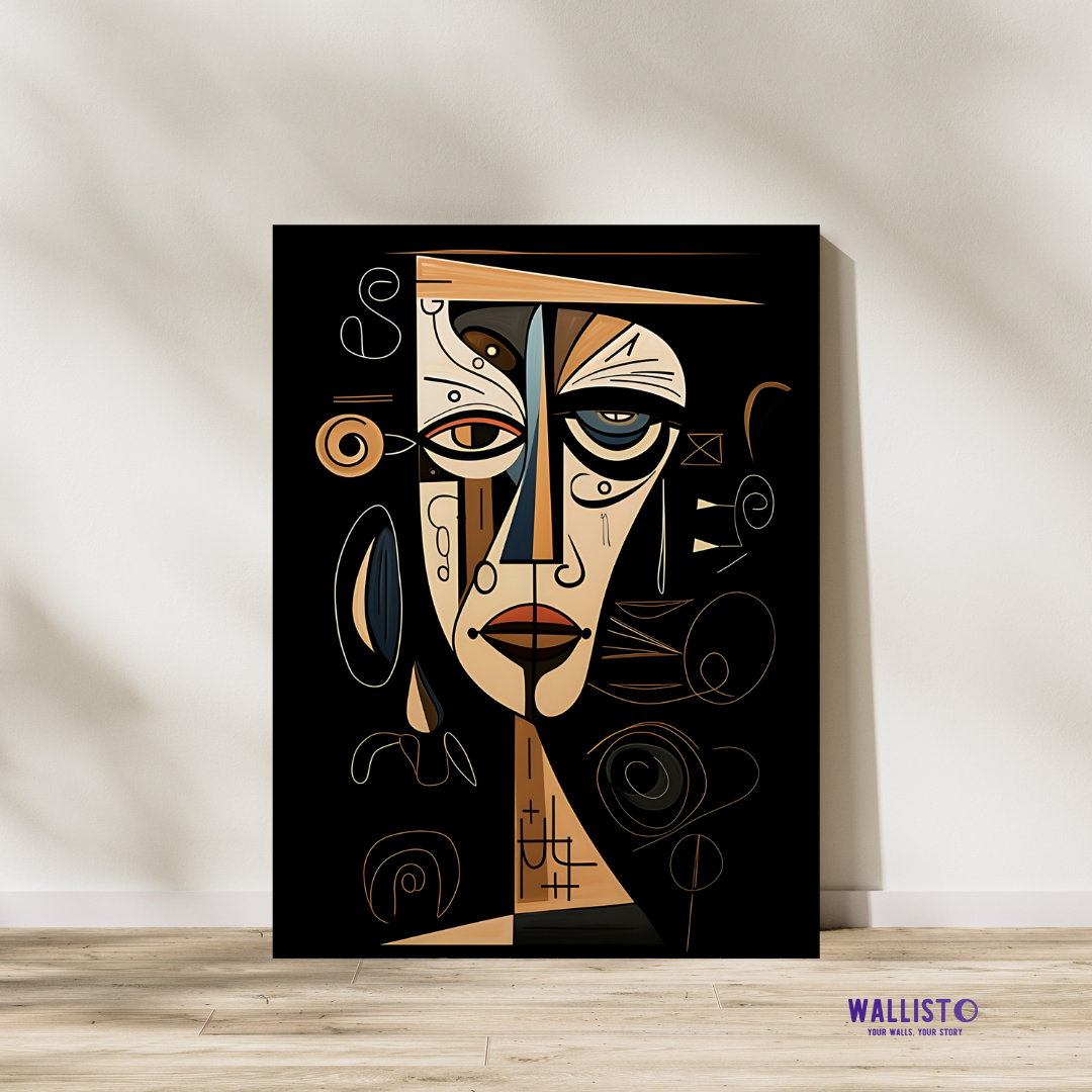 About the Artwork: A striking cubist portrait with bold geometric forms and deep expressions.