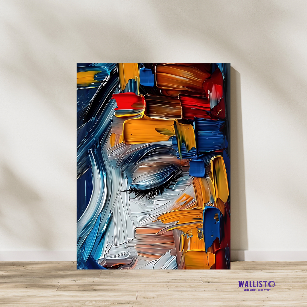 About the Artwork: A deeply textured and expressive close-up of a serene face.